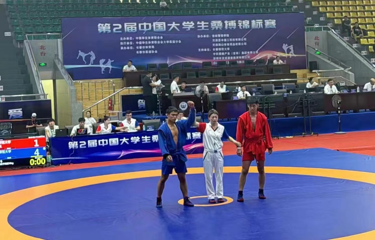 7月13日至14日,第二届中国大学生桑搏锦标赛在吉林长春举办,我校代表队在民族传统体育系主任权黎明教授、教练员王朝丽、卢煜老师的带领下,经过五天的激烈角逐共取得三金两银三铜、男子丙组团体总分第二名的优异成绩。