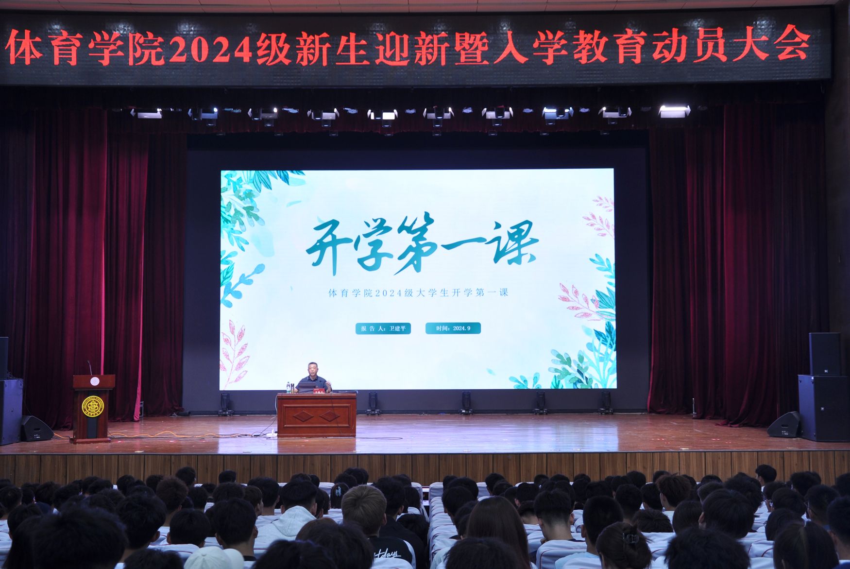 院党委书记卫建平致辞欢迎。首先,卫建平书记对2024级新生的到来表示热烈的欢迎,从一个过来人的身份为新生算了“一笔账”,“如何不负青春韶华,砺志笃行?如何锤炼强大本领,叩问未来?是否能把握住未来几年的体院时光?引起学生广泛思考、最后,对全体新生分享了几点人生感悟:一是锤炼崇高品行,在生活中发现更美的自己。二是学会自讨苦吃,在奋进中遇见更好的自己。三是坚定自信力量,在实践中展现更强的自己。四是练就卓越本领,在未来中成就更高的自己。