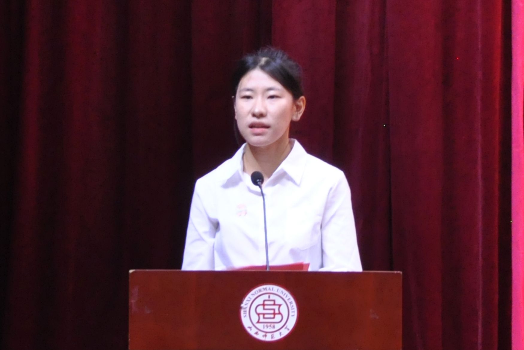 新生代表、体育教育专业2402班王立新同学表示会尽快适应大学生活,明确努力方向,树立崇高的奋斗目标,尊师肯学,严于律己,跨越山海、相聚南开满怀憧憬与期待,共同开启追逐梦想的崭新航程,继续书写爱国奋斗的青春篇章。