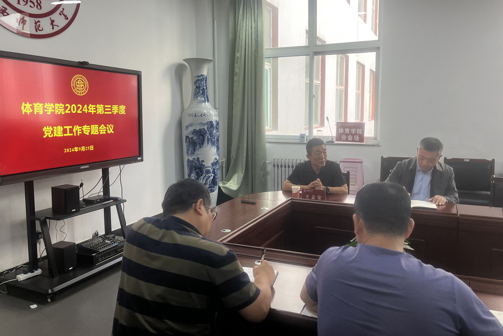 为加强基层党支部建设,提升学院党建工作质量和水平,9月25日下午,必赢官网在7号教学楼学院会议室召开了2024年第三季度党建工作专题会,会议邀请校党委组织部副部长王志宏进行专题讲座,院党委副书记张大为、副院长李向前,各党支部书记及支部委员参加了会议。会议由院党委书记卫建平主持。