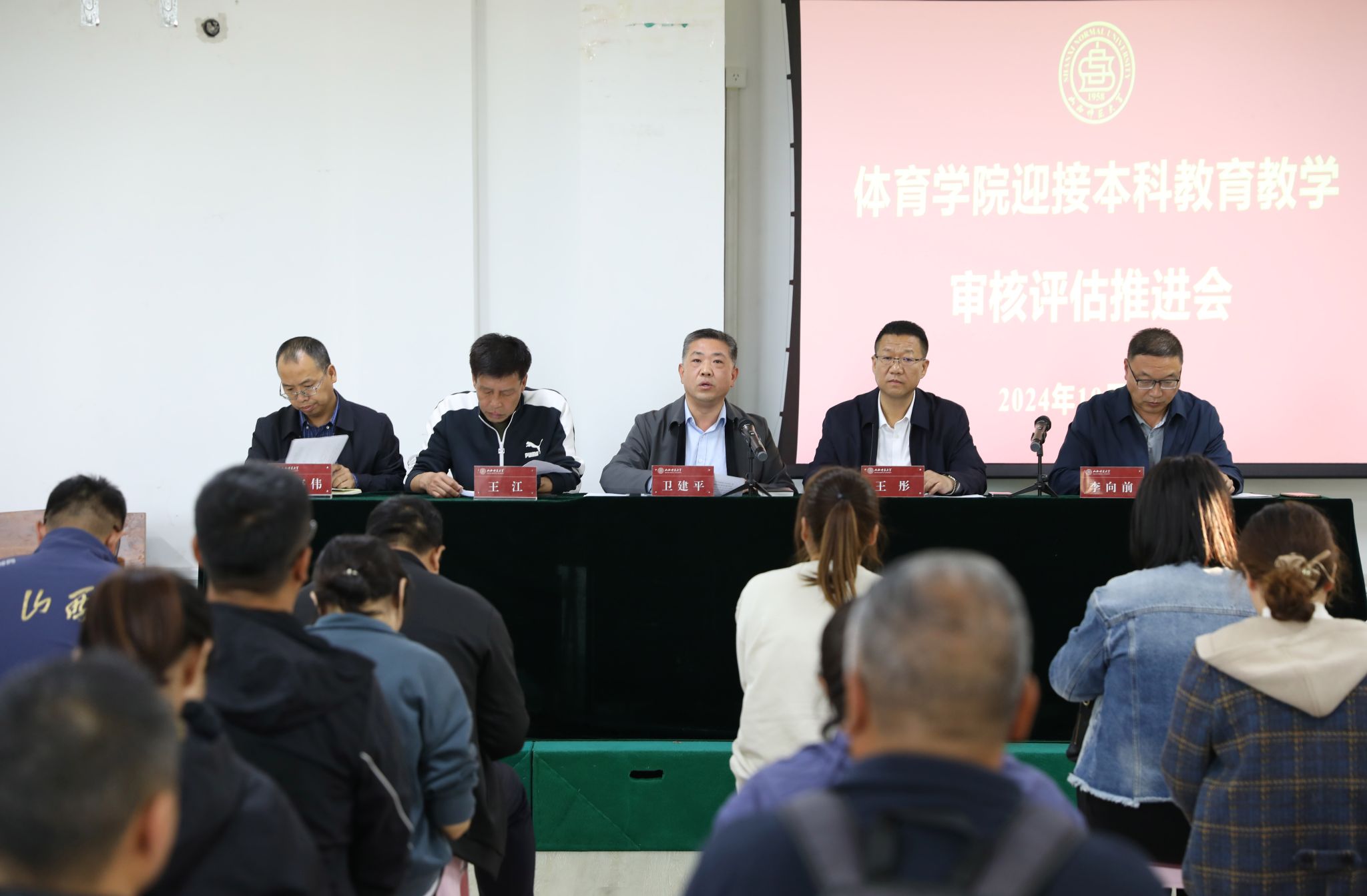 2024年10月15日下午,必赢76net线路在运动心理实验室召开全院教职工大会,传达部署落实学校本科教育教学审核评估推进会任务和精神,院长王彤传达了学校会议精神并作了动员讲话,副院长李向前宣布了必赢76net线路迎评工作的具体实施方案并提出具体要求。会议由院党委书记卫建平主持。