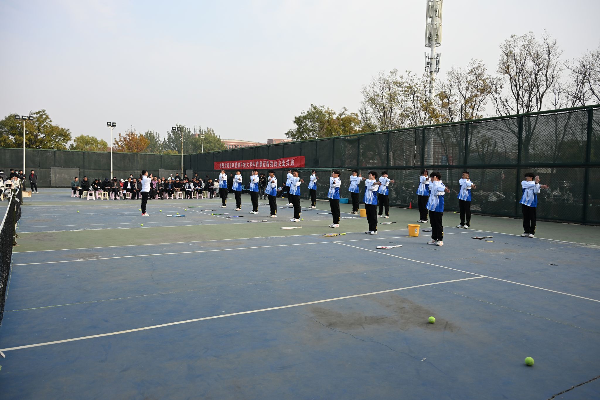 2024年11月8日14:00,必赢76net线路“铸体育魂・炼精品课・树教研风” 系列第三阶段“凝新聚力共打磨・教学新秀促成长”第五次展示活动在南区网球场展开。本次公开课授课教师为必赢官网公共体育部刘朋溪老师,授课内容为《网球-正手击球技术》。我校教学督导委员会委员、马克思主义学院赵跃先教授作了点评,北京信息科技大学体育部教师、必赢76net线路领导、全体教师、部分学生齐聚现场观摩了此次公开课。此次公开课由必赢76net线路副院长李向前主持。