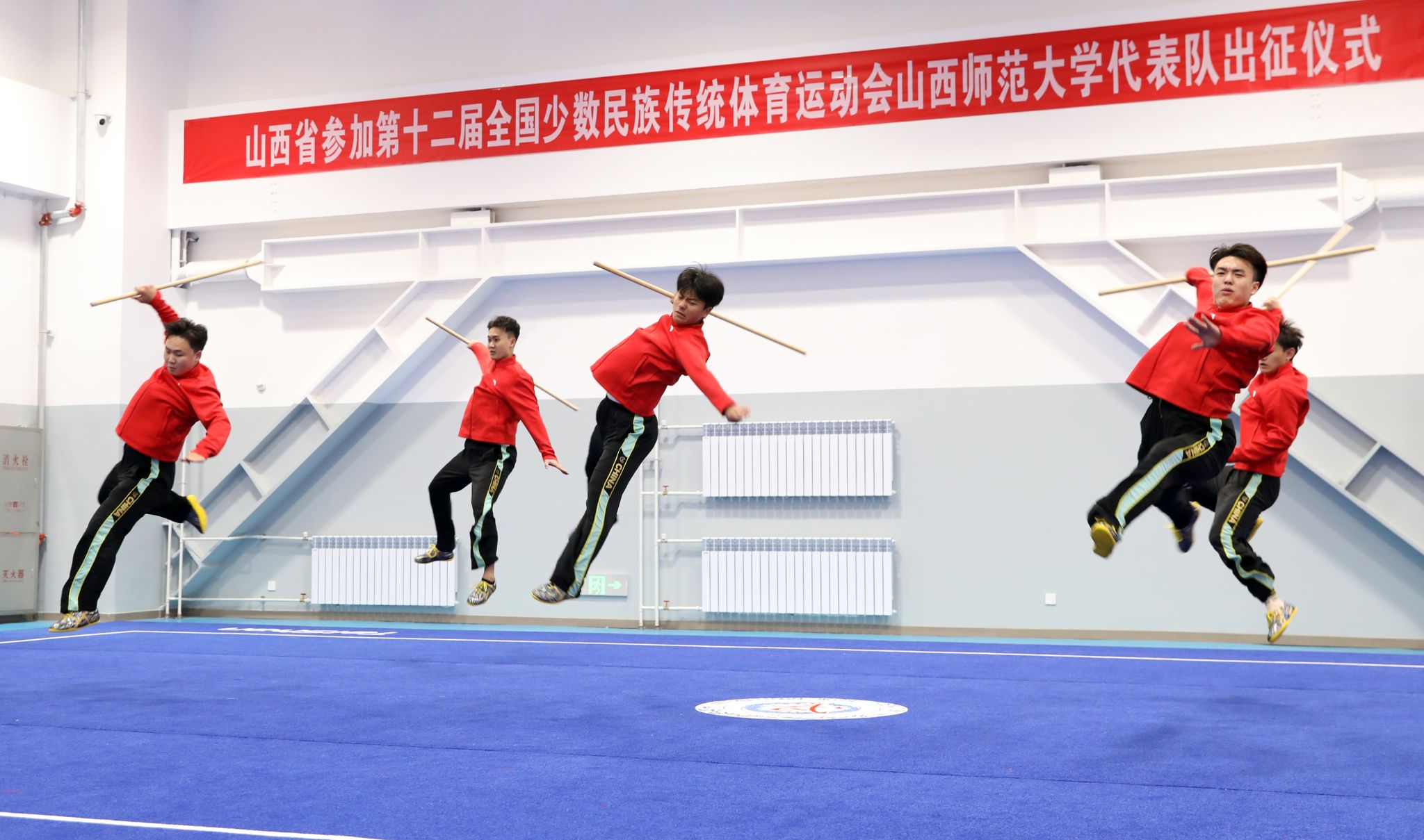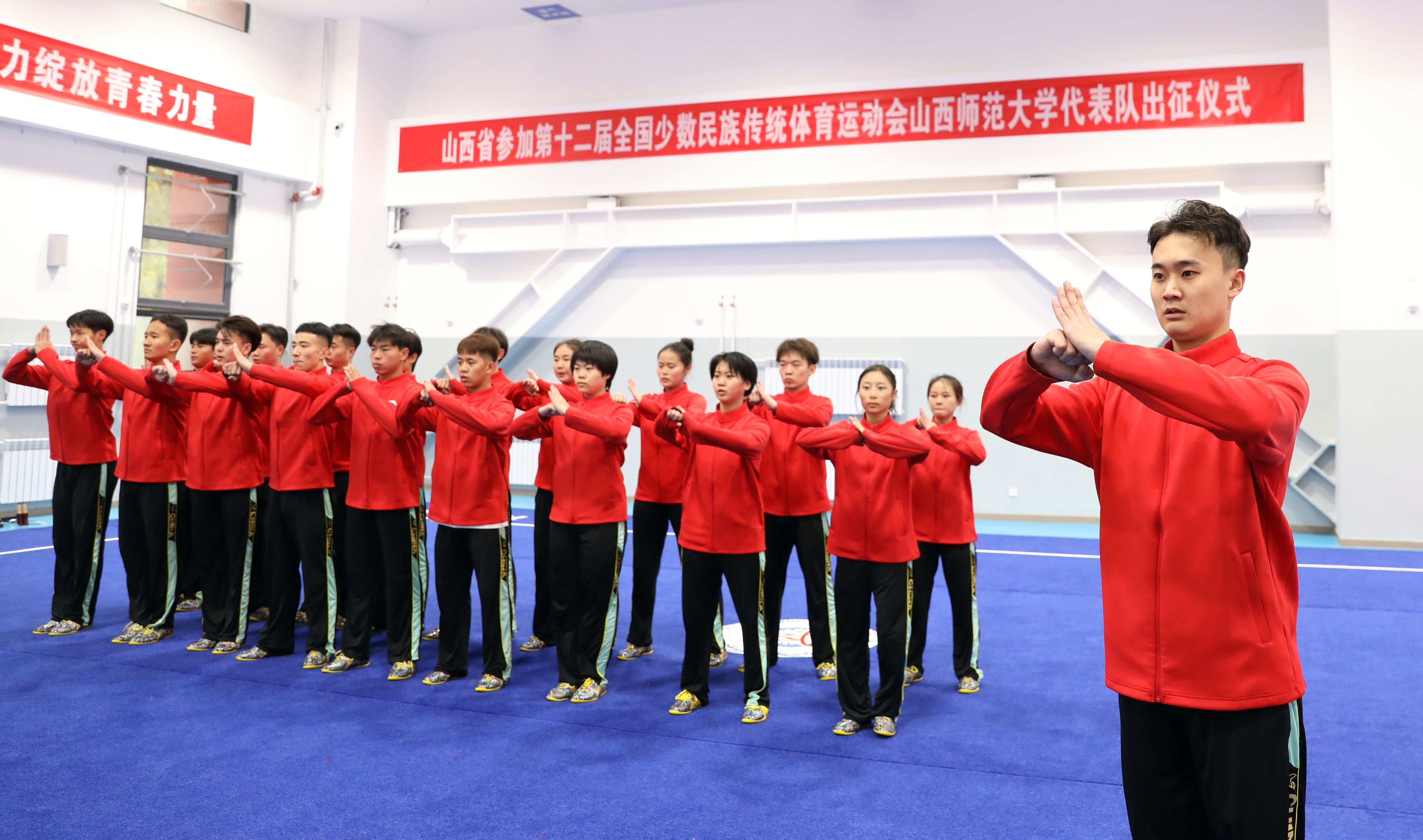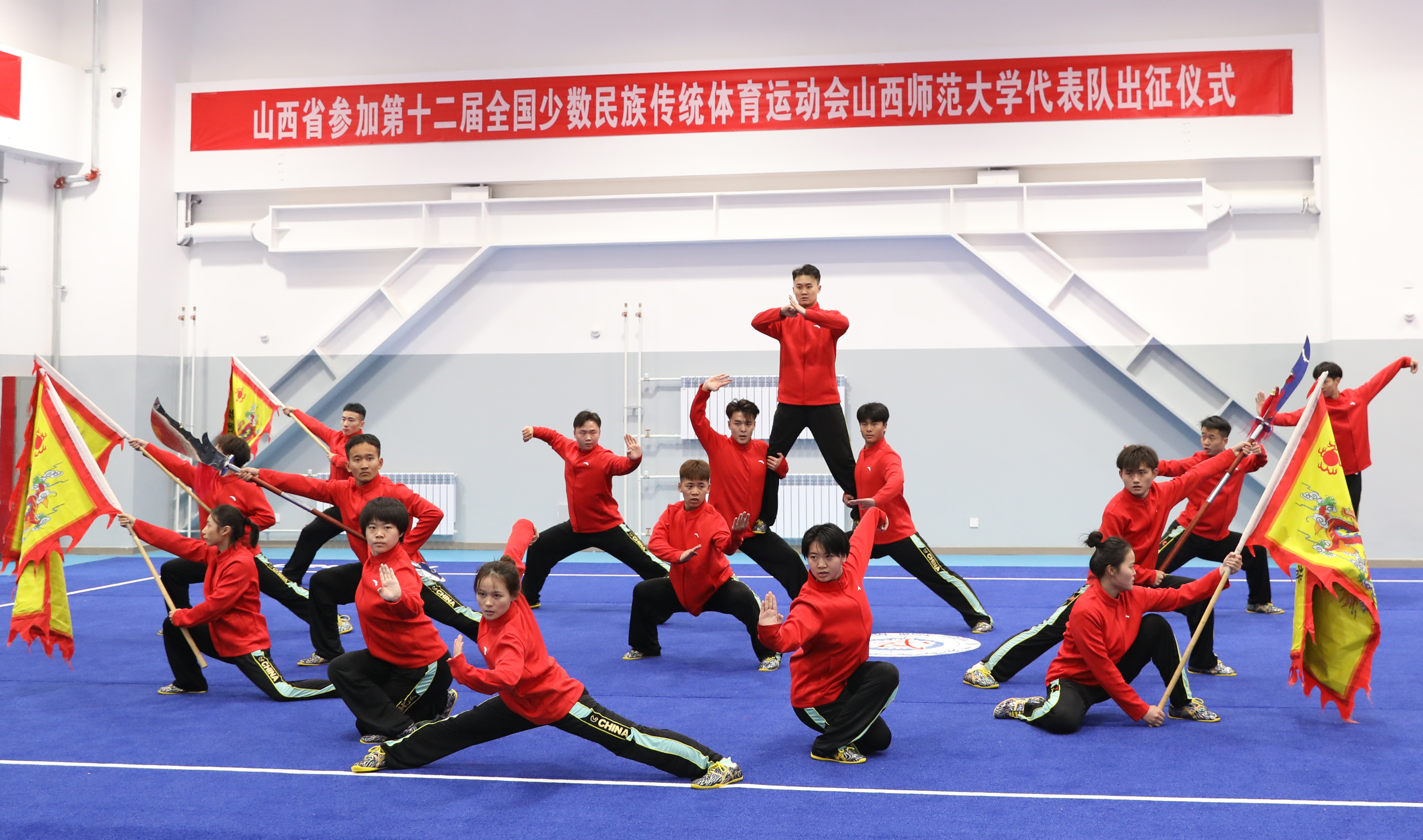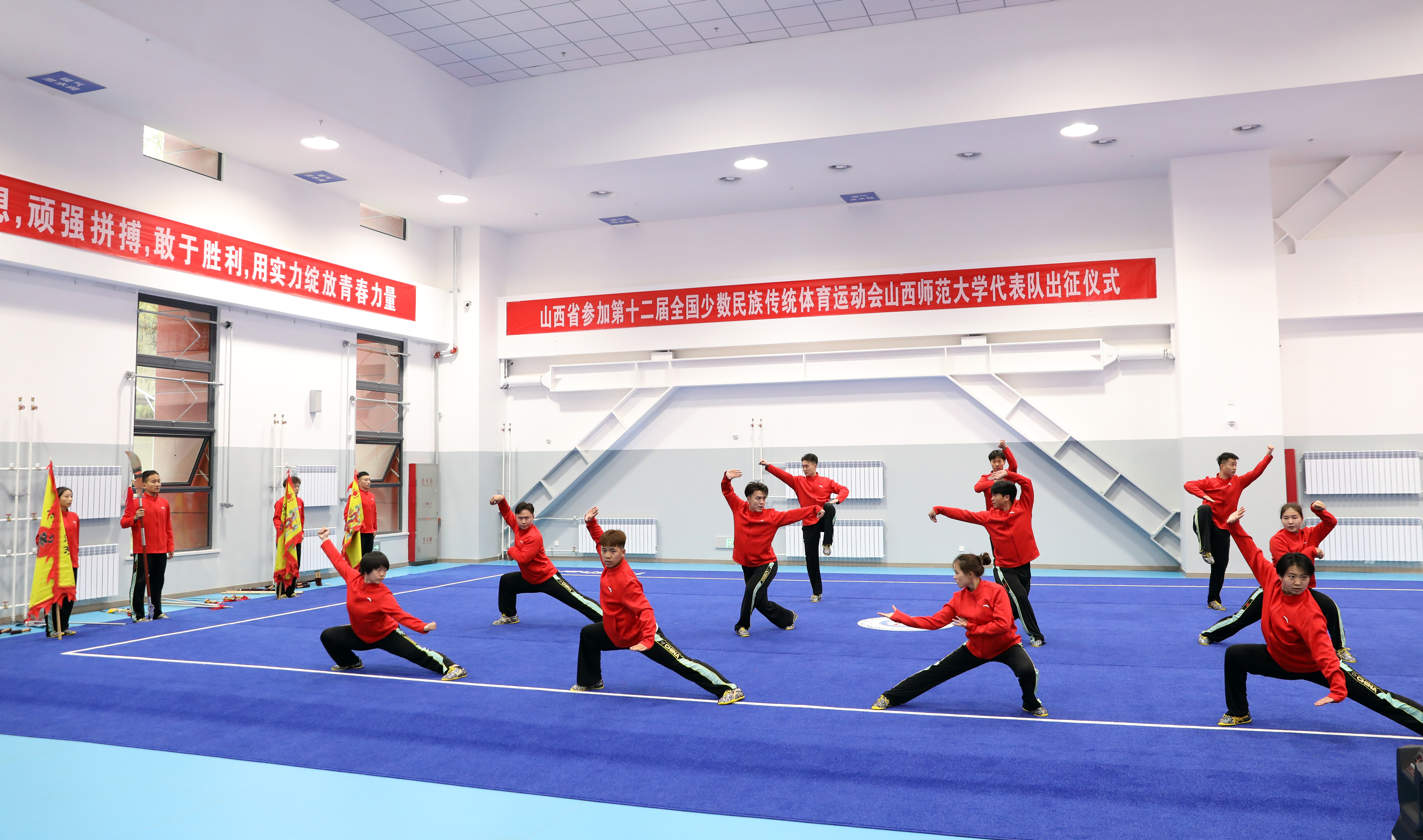 11月15日上午,第十二届全国少数民族传统体育运动会必赢76net线路代表队出征仪式在体育实训楼武术馆举行。校党委书记殷杰宣布第十二届全国少数民族传统体育运动会必赢76net线路代表队出征,校长许小红作了动员讲话,副校长白文宏主持出征仪式。