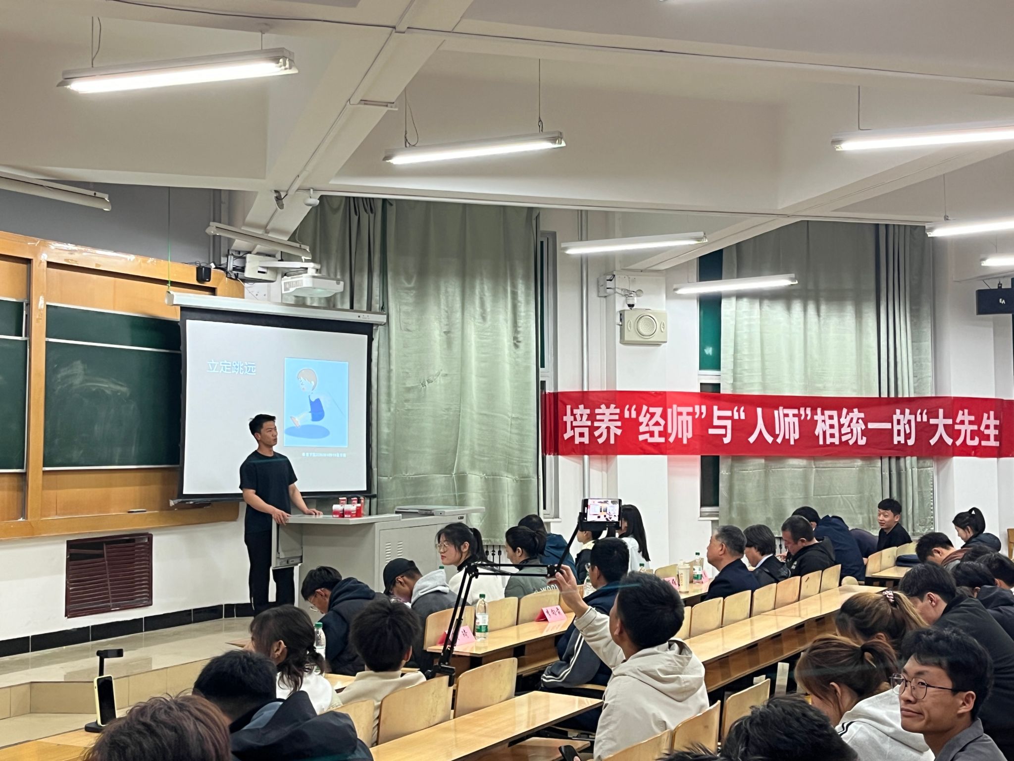 卫书记宣布比赛开始,张杰老师为同学们讲解了“体育教育系未来教师素质大赛暨学生基本功大赛”,“ 大力弘扬教育家精神,培养新时代大国良师”,“培养’经师’与’人师’相统一的‘大先生’ ’’三道横幅的含义与本次比赛的意义。在大赛中,5名参赛选手为我们呈现出不同风格的课堂。比赛后,评委老师也对参赛选手进行了专业和客观的评价。