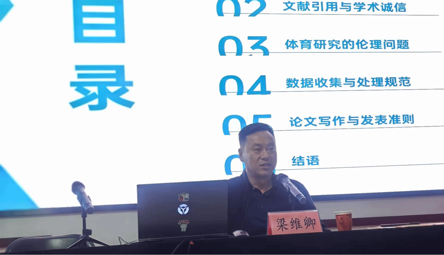 在体育研究的伦理方面,梁老师重点探讨了人体实验和动物实验的伦理审查要求,指出研究者需严格遵守伦理准则,确保受试者的权益,平衡研究的科学价值,并遵循严格的审查流程。