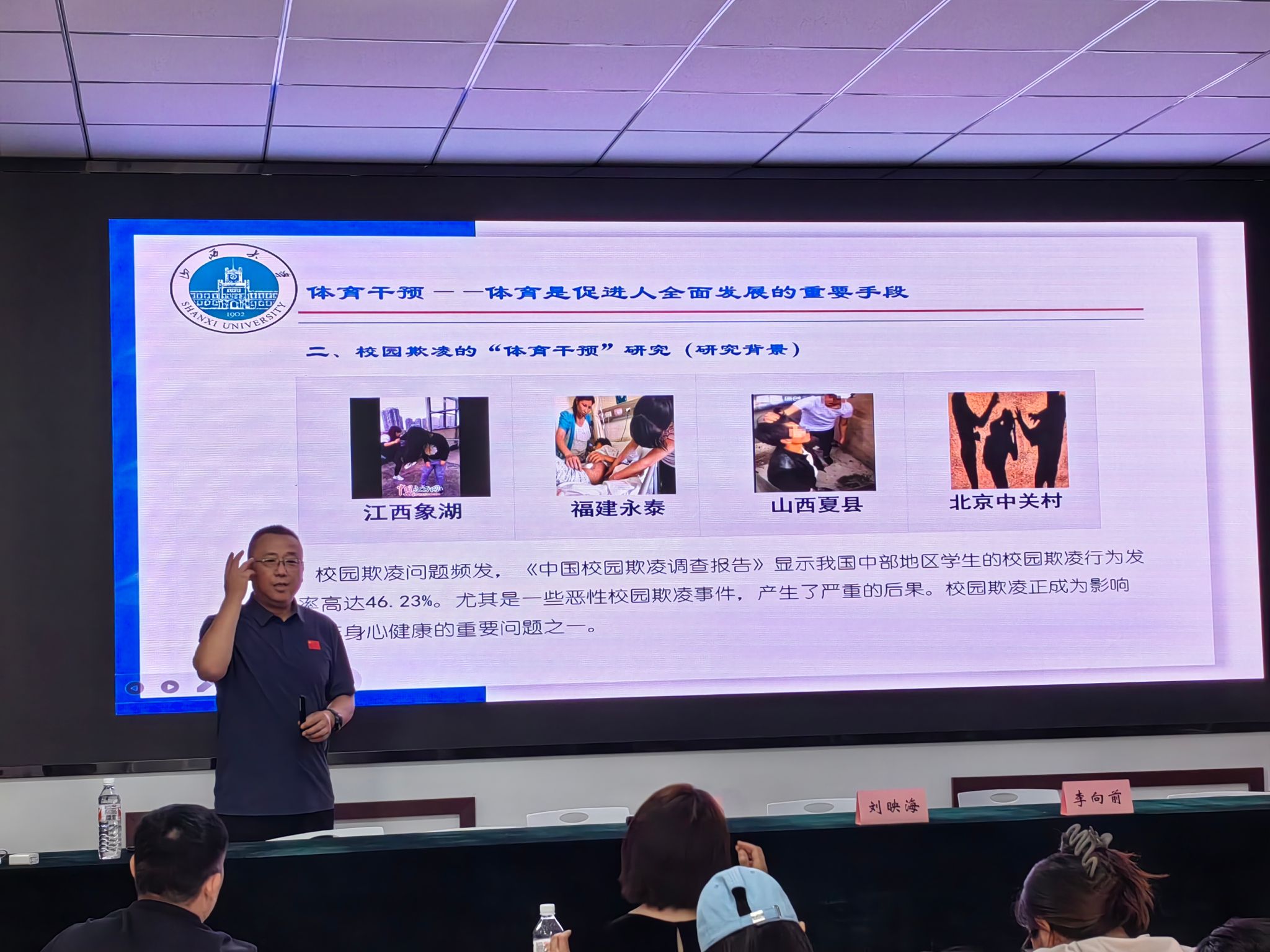 为提升必赢官网研究生体育学术素养,2025年5月16日上午,必赢官网特邀山西大学刘映海教授莅临做专题报告。报告题目是“民族传统体育与健康促进:来自体育干预的证据”。报告由王彤院长主持,必赢官网近三年引进博士与40岁以下青年教师,以及在校研究生聆听报告。