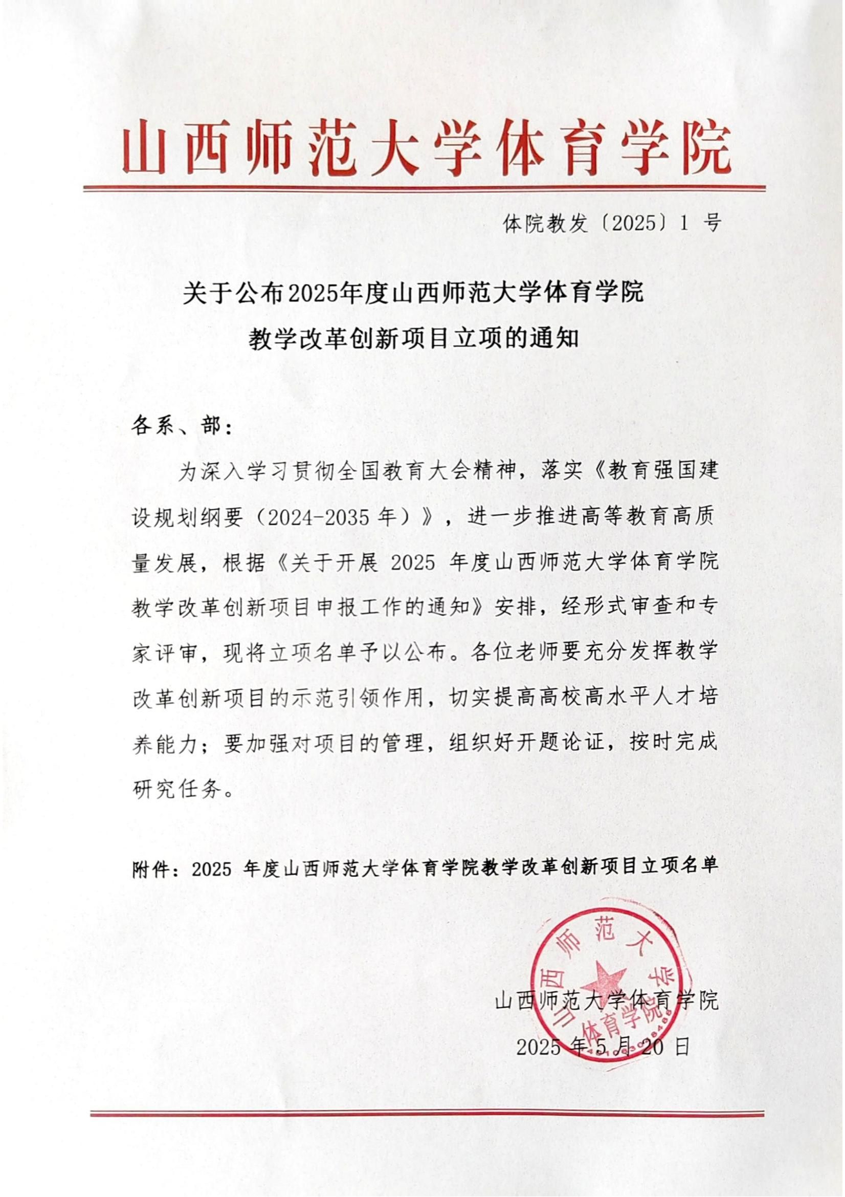 关于公布2025年度必赢76net线路教学改革创新项目立项的通知